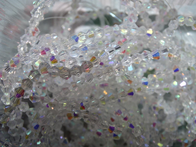 'Rainbow Crystal' Half Electroplated Ab Rainbow Bicones 3.5 - 3.8 x 3mm