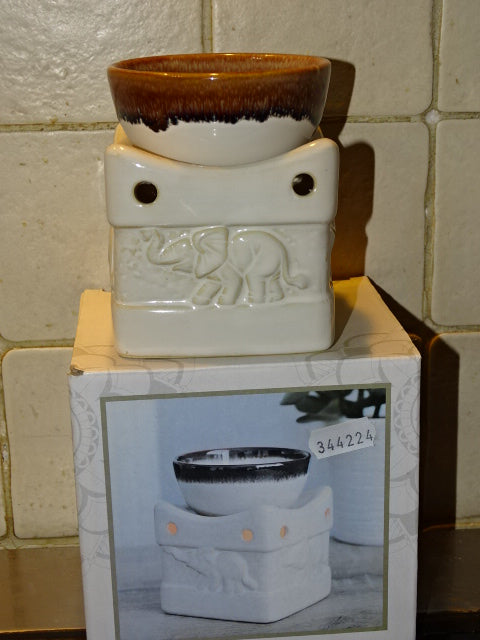 Ceramic Elephant Theme Oil Burner By Spirit Of Equinox Measures approx. 12cm High x 8cm W The oil bowl measures approx 8cm Diameter
