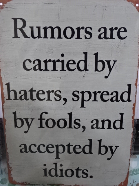 Sign Reads.... Rumors are carried by haters, spread by fools and accepted by idiots A4 Metal Sign