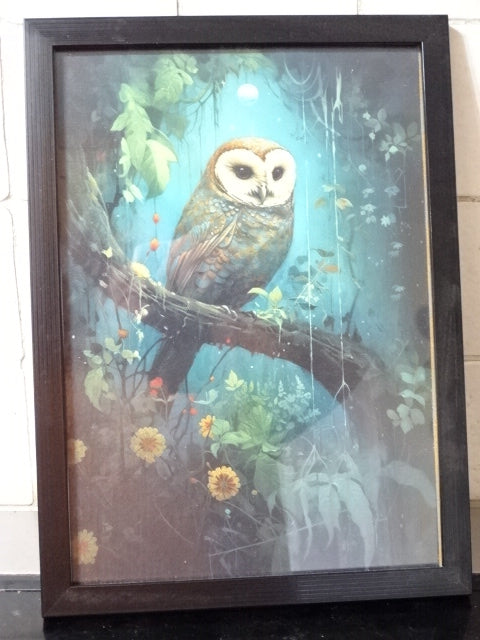 £9.99| /Framed 'Fantasy Owl' Canvas Print Picture 34 x 24cm