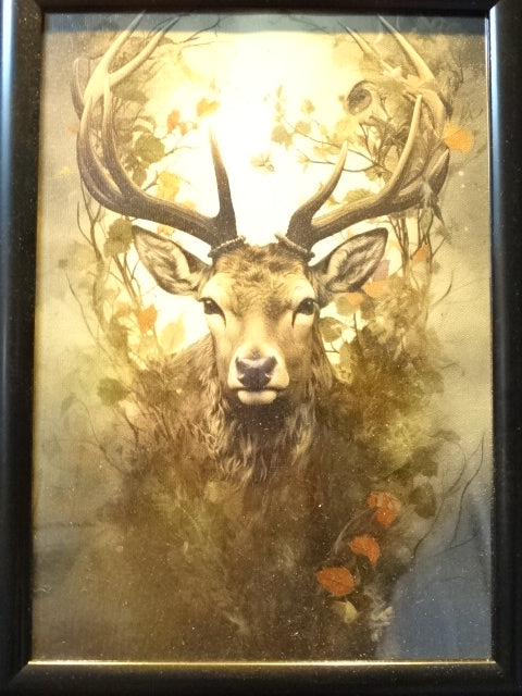 £9.99| /Framed ' Mystical Reindeer' Canvas Print Picture 34 x 24cm
