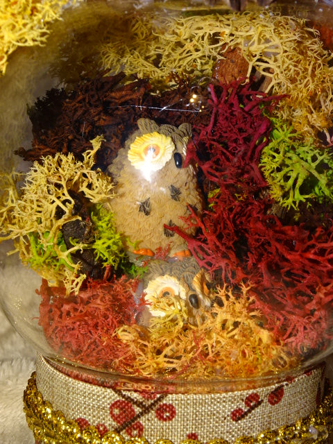Handmade cute jar diorama! An adorable good quality painted resin owl figure perched in a woodland scene All of the Leaves,Twigs, mosses are real...