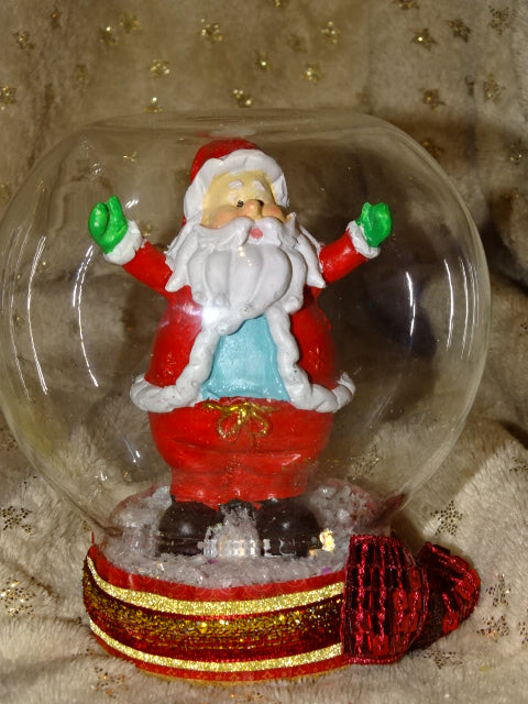 Adorable handmade diorama of a happy Santa Claus in a glass dome. The large size Santa is made of good quality painted resin and he is standing on ...