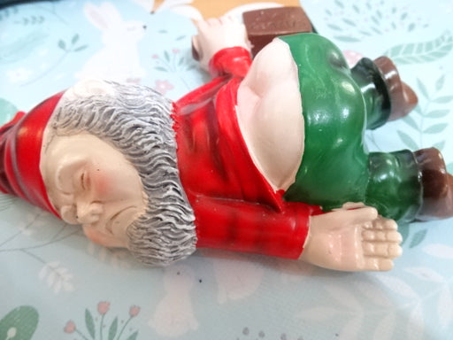 A bit 'Worse for wear after the garden party' Cute resin small sized Gnome foe any novelty Gnome fan! He measures approx 14cm L x 10cm W