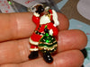 Adorable enamelled Santa Brooch complete with his little Black enamelled mittens, Shiny Red Santa suit and an unusually colourful sack full of goodies (or is it an Xmas Tree? Choice is yours!)  embellished with teeny tiny Diamond like rhinestones!