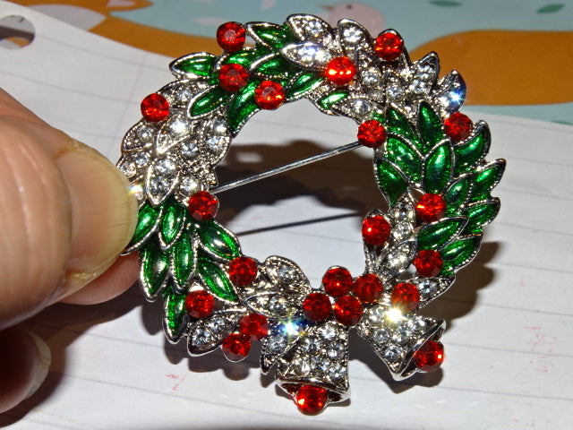 Large Sparkling Wreath Festive Brooch