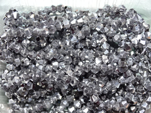 Silver Electroplated Glass 4 mm Bicone Beads Sold in packs of approx 80 beads