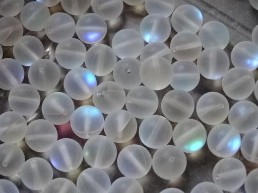 Beautiful Holographic Effect Frosted Glass Beads 10mm Imm Hole through centre of bead Sold in packs of 20