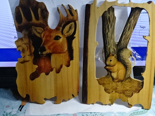 Very simple, but Beautiful cut Natural Wood design with Woodland Animal Print, Decorative Plaque. (2D) The Plaque comes with it's own mounting set...