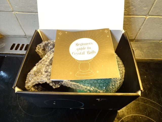 A beautiful 13cm (130mm) Teal Coloured Glass Crystal Ball And Stand (by Something Different)